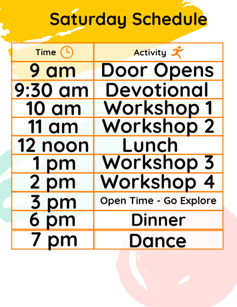 After the Morning meet up, everyone will then be separated into workshops allowing you to get 4 of the 5 available to go to.
